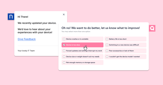 This is where HappySignals complements Nexthink. We continuously capture how employees actually feel about IT, how much time they lose, and why.